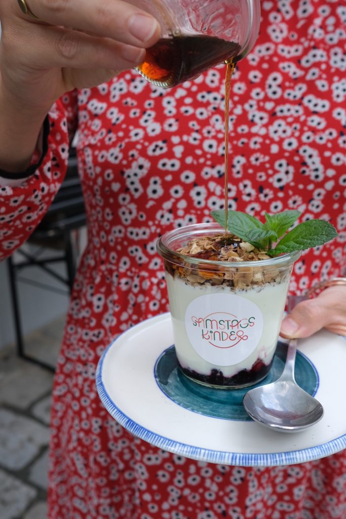 Unser SAMSTAGSKINDER Brunch gibt dir die Gelegenheit dich einmal durch unsere ganze Frühstückskarte zu probieren. Wir servieren dir nach und nach alle Frühstücksgerichte und du kannst jederzeit nachbestellen. Da aus unserer Erfahrung ein Buffet leider meist mit viel übrigen Speisen einhergeht, verzichten wir bewusst auf ein Brunchbuffet.