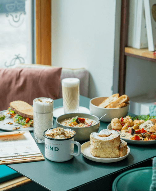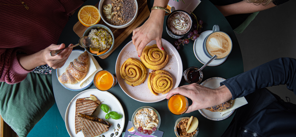 Wir verwöhnen dich zu unseren Öffnungszeiten mit Frühstück & Brunch, Mittagessen & Snacks, Kuchen & Zimtschnecken.